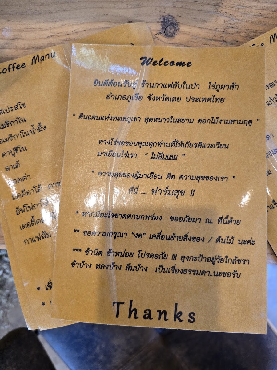 ไร่ภูผาสัก ภูเรือ (Nana Cup) Menu